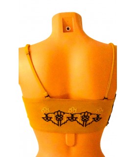 This refined tube top adjusts your posture and chest and is fully embroidered on the front and back with black silk and golden thread.
