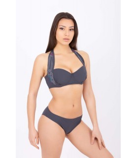 Dark grey bikini top with embroided straps.
